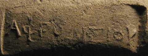 The faint inscription reads "Aphrodisiou". The size of this seal is 1.5" x 0.5" (39 x 12 mm). ![]()