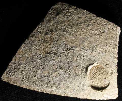 Notice the 2 ring-bezel marks at the top & bottom of the seal border, plus a disturbance in the body of the shard where a knuckle of the ring wearer probably collided with the wet clay during the stamping operation: ![]() ![]()