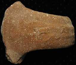 Description by Michael Welch: #104 One-half jar handle with a tiny amount of jar pottery remaining.